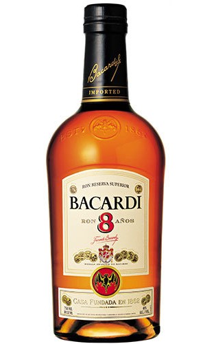Parlons maintenant de notre rhum en dégustation. Je me suis procuré le Bacardi 8 ans. C’est un rhum produit aux Bahamas et importé aux États-Unis pour être embouteillé. La bouteille utilisée est quand même attirante et l’étiquetage est d’un beau design affichant le 8 ans, les médailles remportées par ce rhum et le logo légendaire de la chauve-souris de Bacardi. Un bouchon de liège couronne la bouteille transparente. Le liquide est ambré avec des reflets brun doré. En débouchant la bouteille, on peut sentir des vapeurs de cassonade légèrement épicée et de l’abricot. Après avoir passé cinq minutes à sentir le rhum dans la bouteille, il faudrait bien la verser…